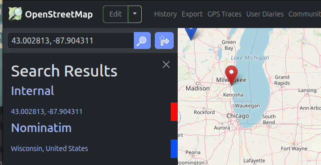 The longitude/latitude data can be used to locate the GPS fix in Open Street Maps by pasting the values into the search box in the upper left. Southern latitudes and western longitudes should be entered as negative values:
